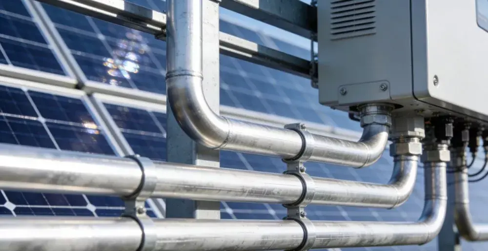 Cás-Staidéar: I dtionscadal stáisiún cumhachta fótavoltach láraithe ar scála mór, úsáideadh Feadáin Cruach Ghalbhánuithe φ48×3.0 chun lúibíní modúl fótavoltach a mhonarú, arbh ionann iad agus breis agus 800 tonna san iomlán. Oiriúnach do thimpeallachtaí lasmuigh, gaofar agus gaineamh, seasann an ciseal since go héifeachtach radaíocht ultraivialait agus creimeadh gaoithe agus gaineamh, rud a chinntíonn saol seirbhíse na lúibíní agus cobhsaíocht suiteála na modúl fótavoltach.